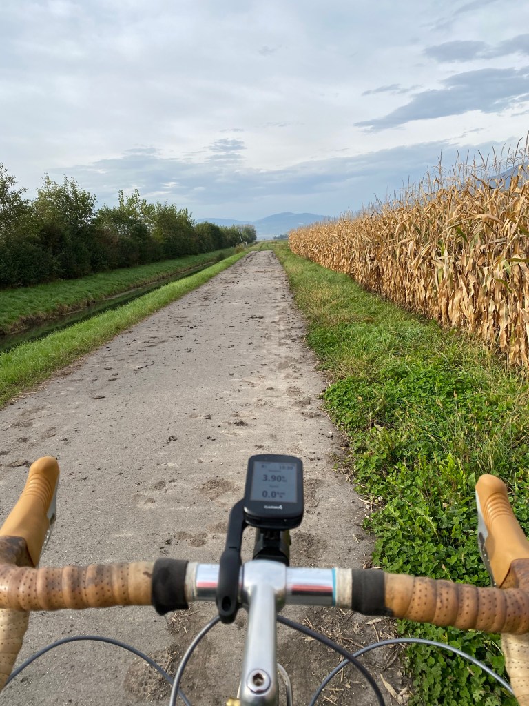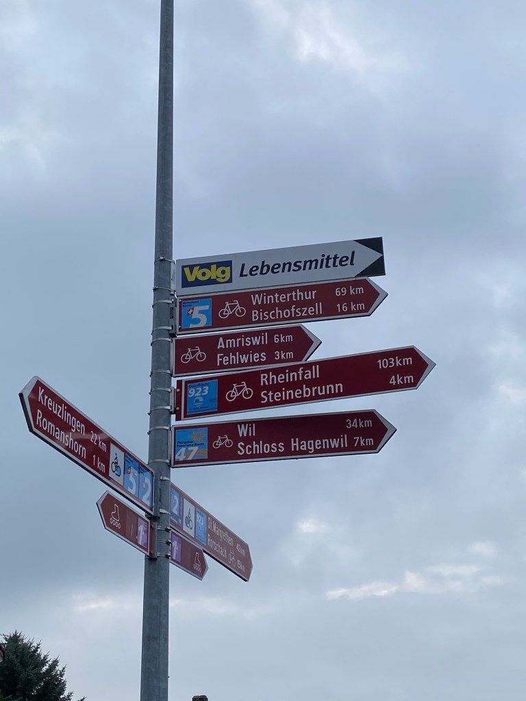 So here I go, from Romanshorn, following several rivers that eventually fill Lake Geneva. With that in mind plus heading south has me believing it’s all downhill to Geneva and the French border. But what about those ominous clouds above the lake?