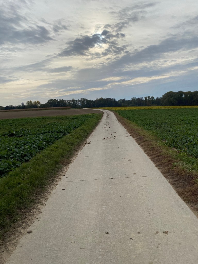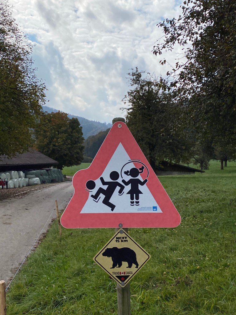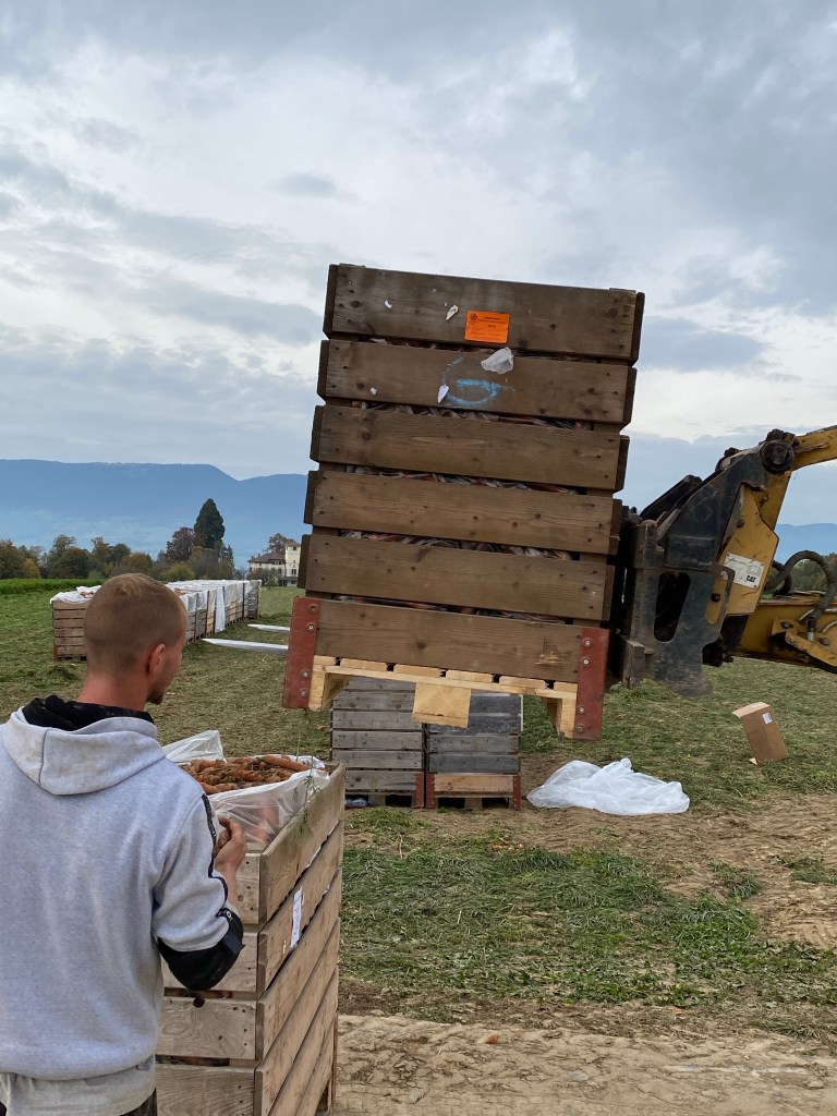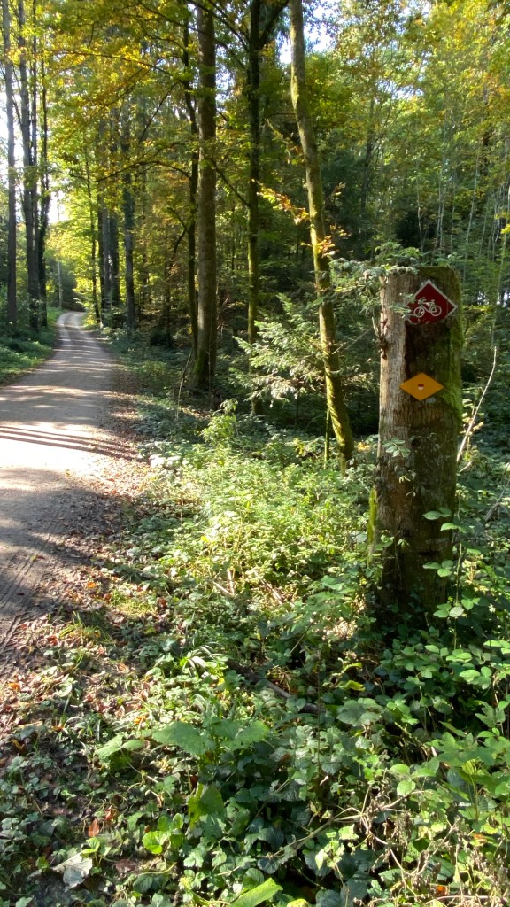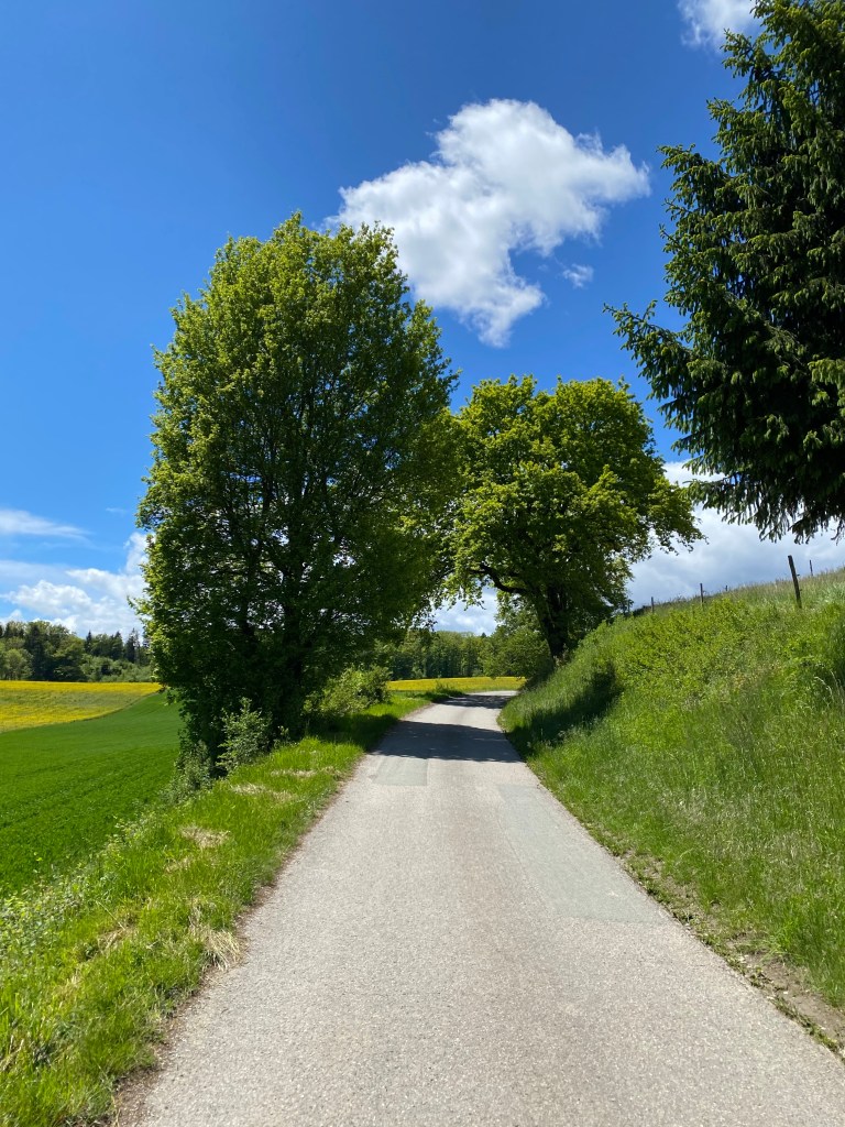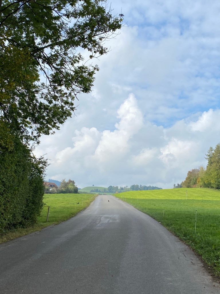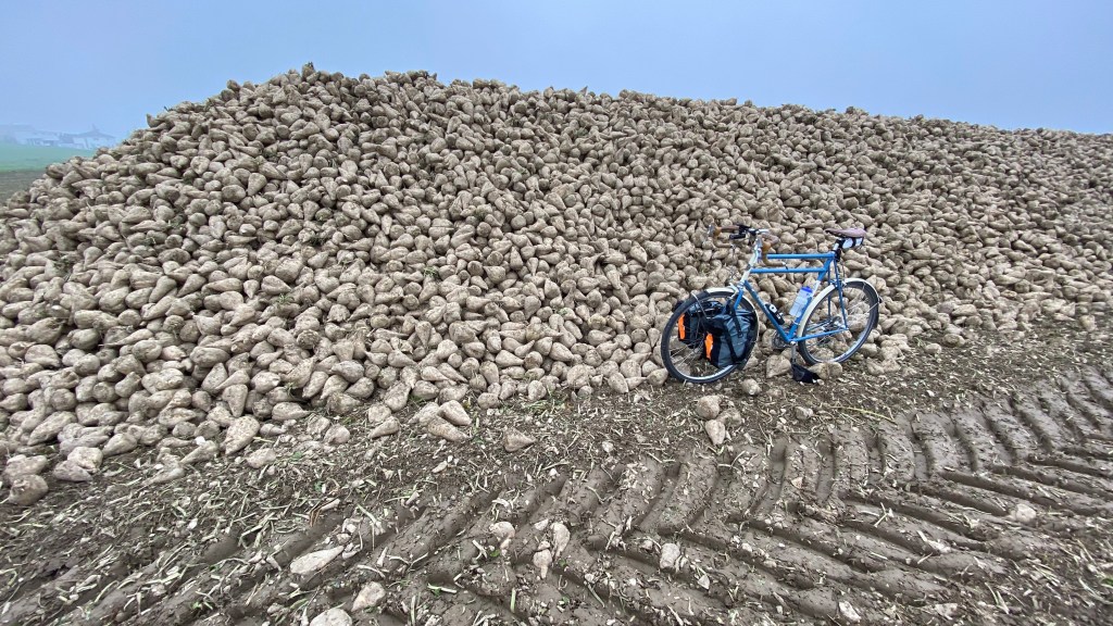 Like the bicycle routes in the Netherlands, cutting across fields is common. Here they have recently harvested a kind of turnip or Swede. I think to feed cows. I’ve heard this is a cross of some kind between a cabbage and a turnip, cultivated originally right here in Switzerland. You can see a pile of them on the right.