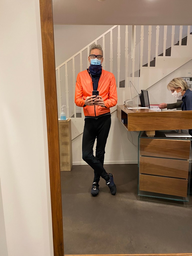 Today’s cycling did not disappoint in lived experiences. The day began with a frigid foggy ride. At four degrees, wearing most of my layers still left toes and fingers feeling numb.