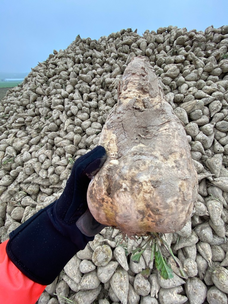 Yesterday it was fields piled high with sugar beets, which a helpful reader pointed out provides the people who live in Switzerland with 2/3 of the sugar they consume. Who knew? In case you missed it in the previous blog, here is what one looks like: