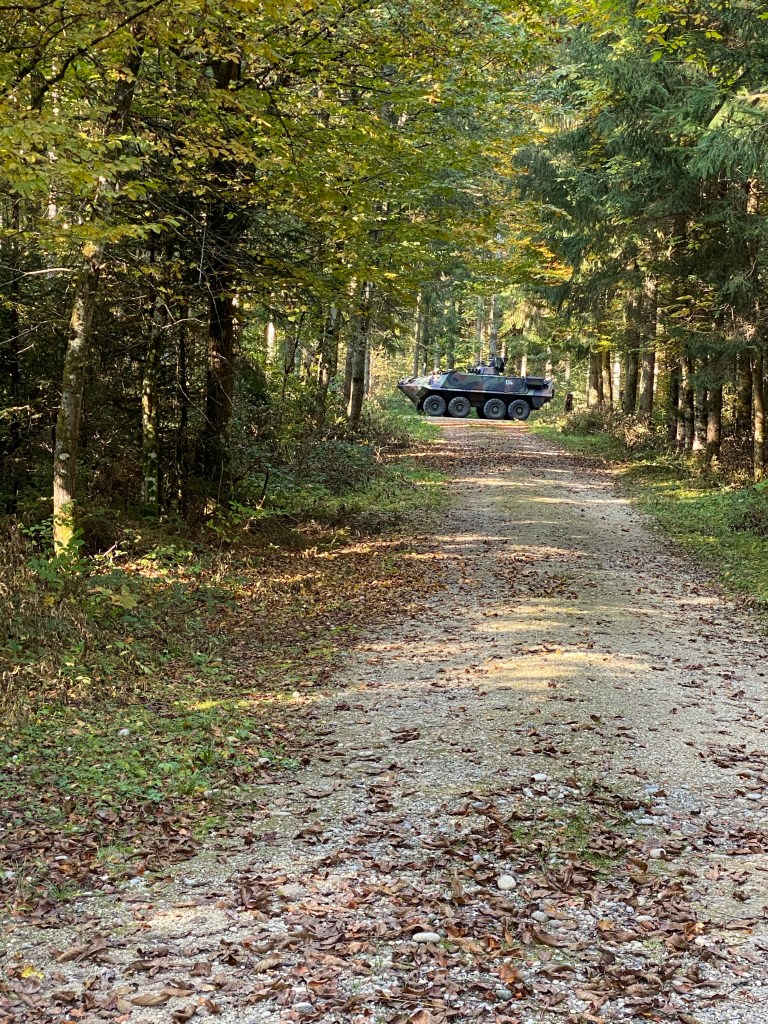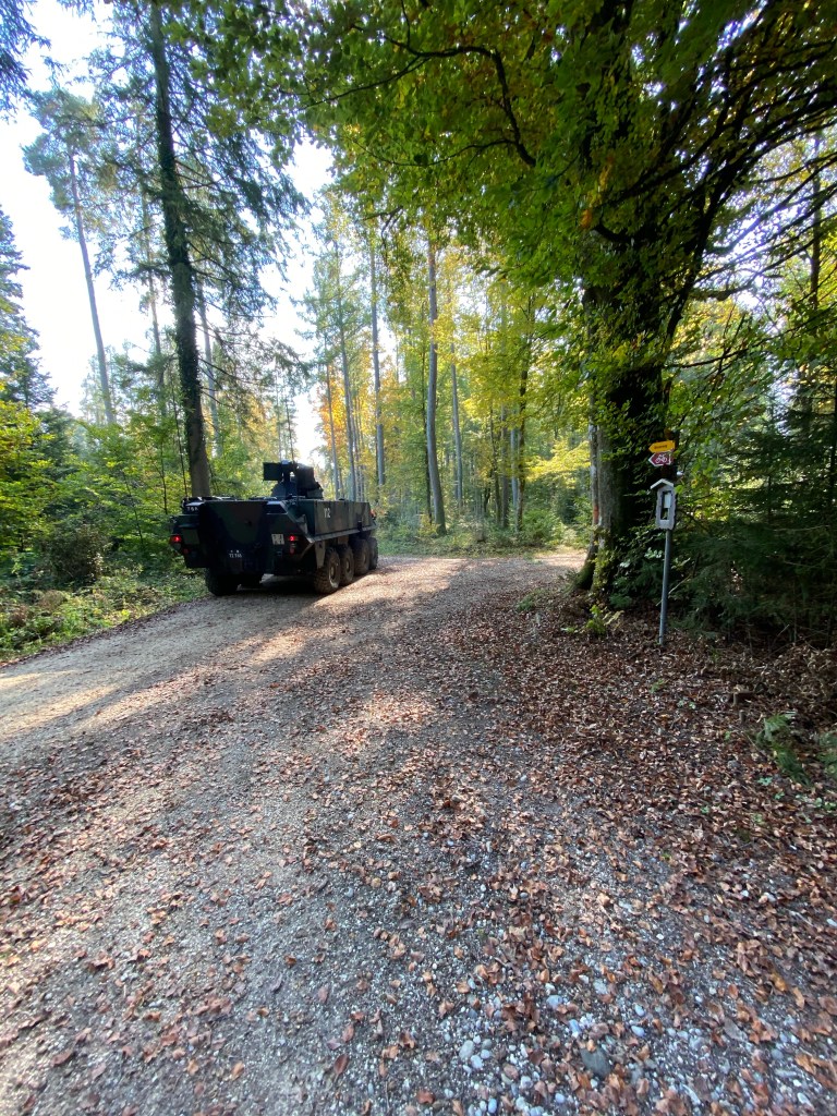 The most curious adventure of the day was coming upon Swiss military manœuvres in the deep forest.