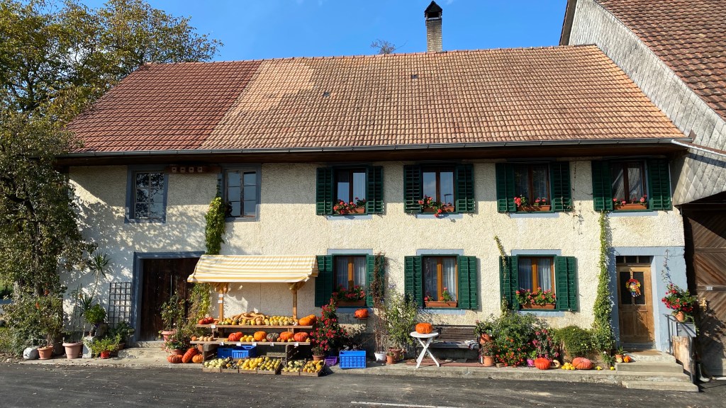 This area is one of Switzerland’s fruit growing regions. Not just apples but kilometers of other fruits like strawberries.