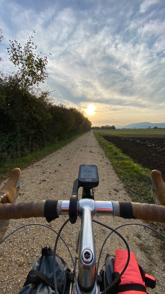 As the sun sets behind the Jura mountains, I pedal on for another half an hour to home and a hot bath.