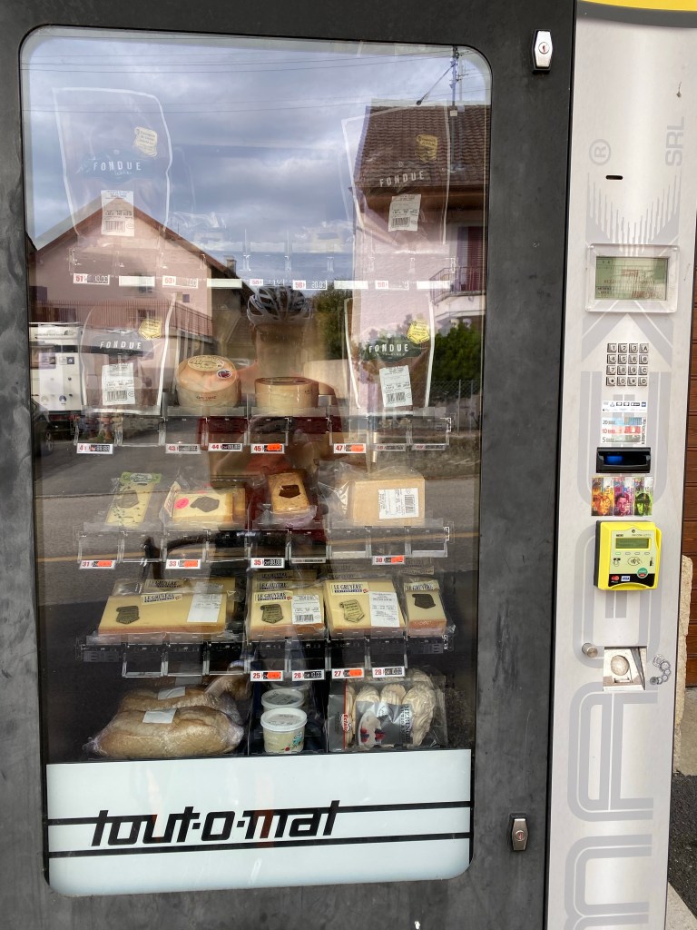 Look what’s in the village vending machine. Cheese and bread. Mostly cheese.
