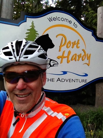 Arrived in Port Hardy, the top of Vancouver Island, having made it here from Metchosin, the most southern part of the island. My feeling on pedaling in was not so much a sense of accomplishment but a feeling that I did not want to stop. The 46 km from Port McNeill to Port Hardy, which I started at 6 pm, is smoothly paved and there were maybe a dozen cars that passed the whole time. It does seem like Canadian dinner time makes for the most tranquil time to ride. I am told it was unusual to make the run from Campbell River to Port Hardy with just a few showers.