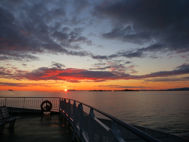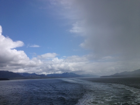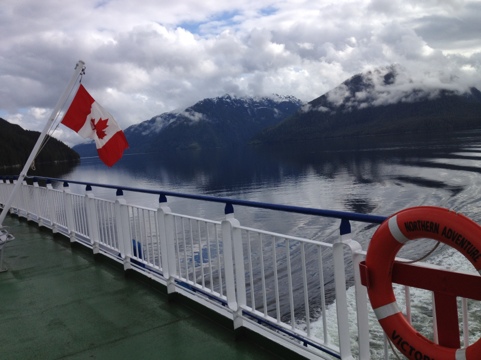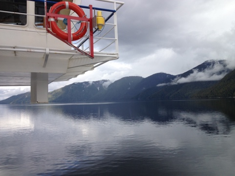 The ferry run from Port Hardy to Prince Rupert is breathtaking. The boat stops its rolling once it tucks into the Inner Passage. Within the first hour we see a finback whale, lots of porpoises and a pod of Orcas. We are on a new ferry boat, a replacement of the one that struck a rock and sank a few years ago. As a result of that accident, procedures of accounting for passengers is like flying even more so: you have to show your identification to get on and to get off.
