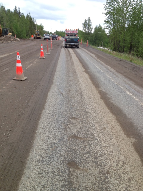To get through the construction of the bridge, I am given a personal escort from a pilot truck over the temporary wooden bridge.