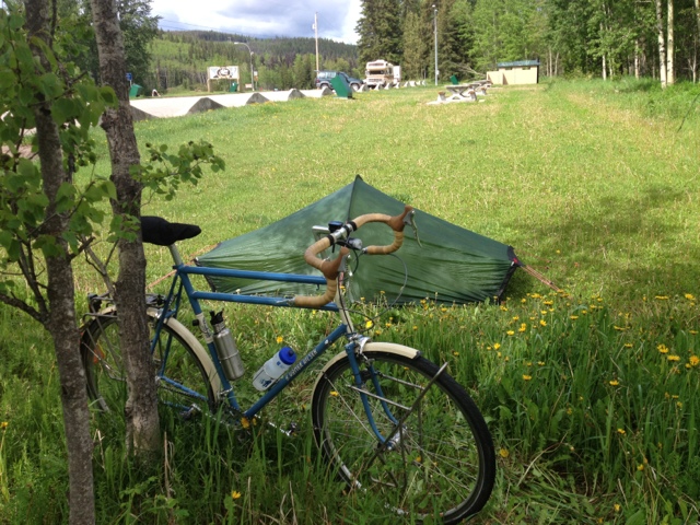 The first major rain hits me for the remaining fifty kilometers to Burns Lake. I find there are no campsites other than a free municipal site but it has no water or showers. So I find dinner and at 7:30 pm with the rain stopped and some blue sky showing I push on.