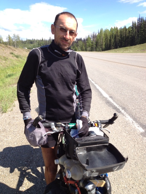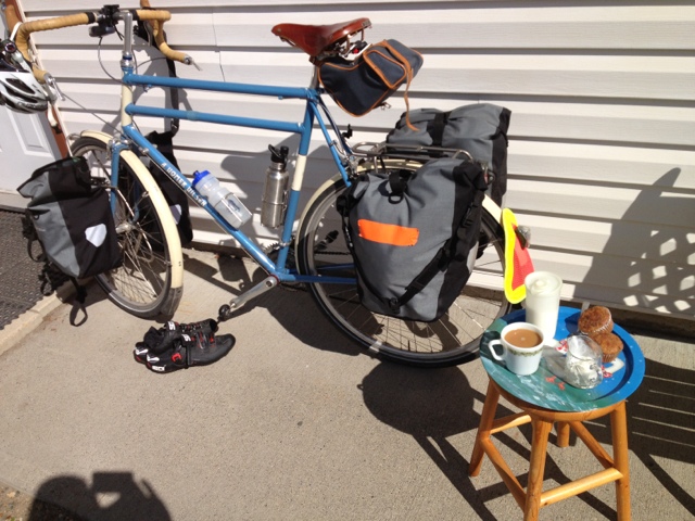 The kind owner of Dave’s Campground really surprised me this morning. She came and delivered my pannier full of food untouched by bears and brought other gifts with her. These included three fresh baked rhubarb muffins, a banana, two yogurts, coffee with cream and sugar and offered to make me French Toast. She told me all about her twenty-three grandchildren as I enjoyed this unexpected treat.