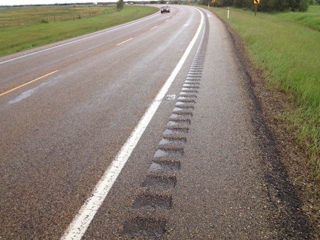 I am finding the rumble strips are becoming my friend. Although they cut down the space on the road shoulder to ride on, they are a reassuring presence, especially on curves.