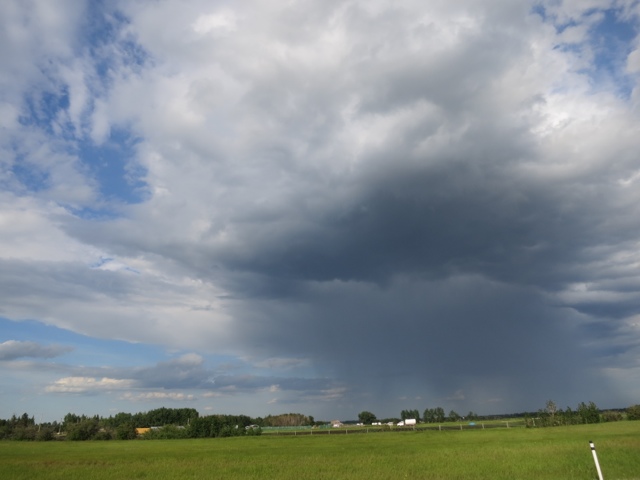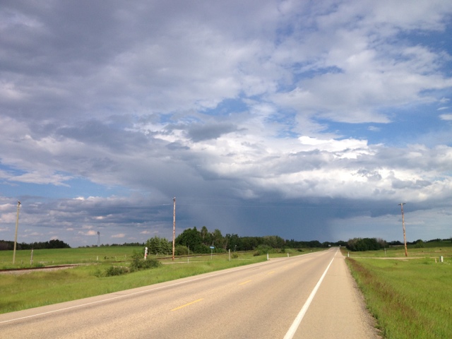 I did not find a really good way to leave Edmonton so used the ring road. I felt very exposed and out of place on a major highway with lots of on ramps and off ramps but the shoulder was at least three meters wide so a whole peloton could have been riding with me.