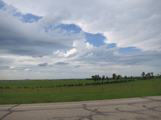 I take a chance on a final twenty kilometers as we just don’t know what to make of the rapidly developing weather. We make it just inside the Saskatchewan border to the town of Macklin, home to the largest Bunnock in the world. If you have to ask, I guess I will leave the suspense to your own search.