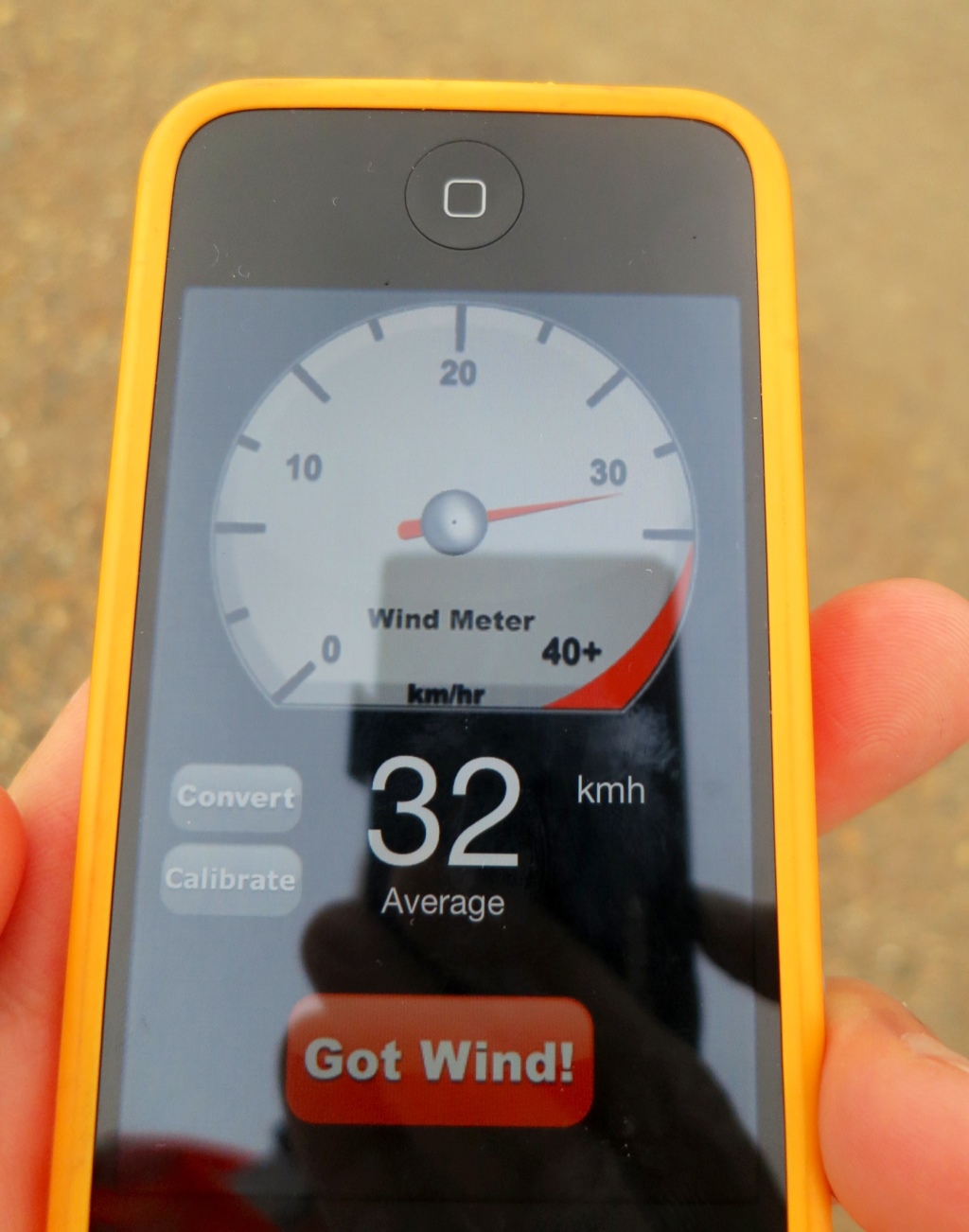And when I pull out my little anemometer app after arriving in Saskatoon, I can see it is still blowing fairly hard.