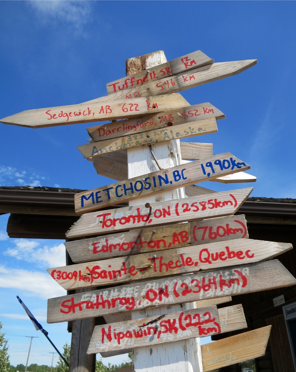 The visitor centre has direction and distance signs to a variety of cities so I get permission to add the town where this journey began.
