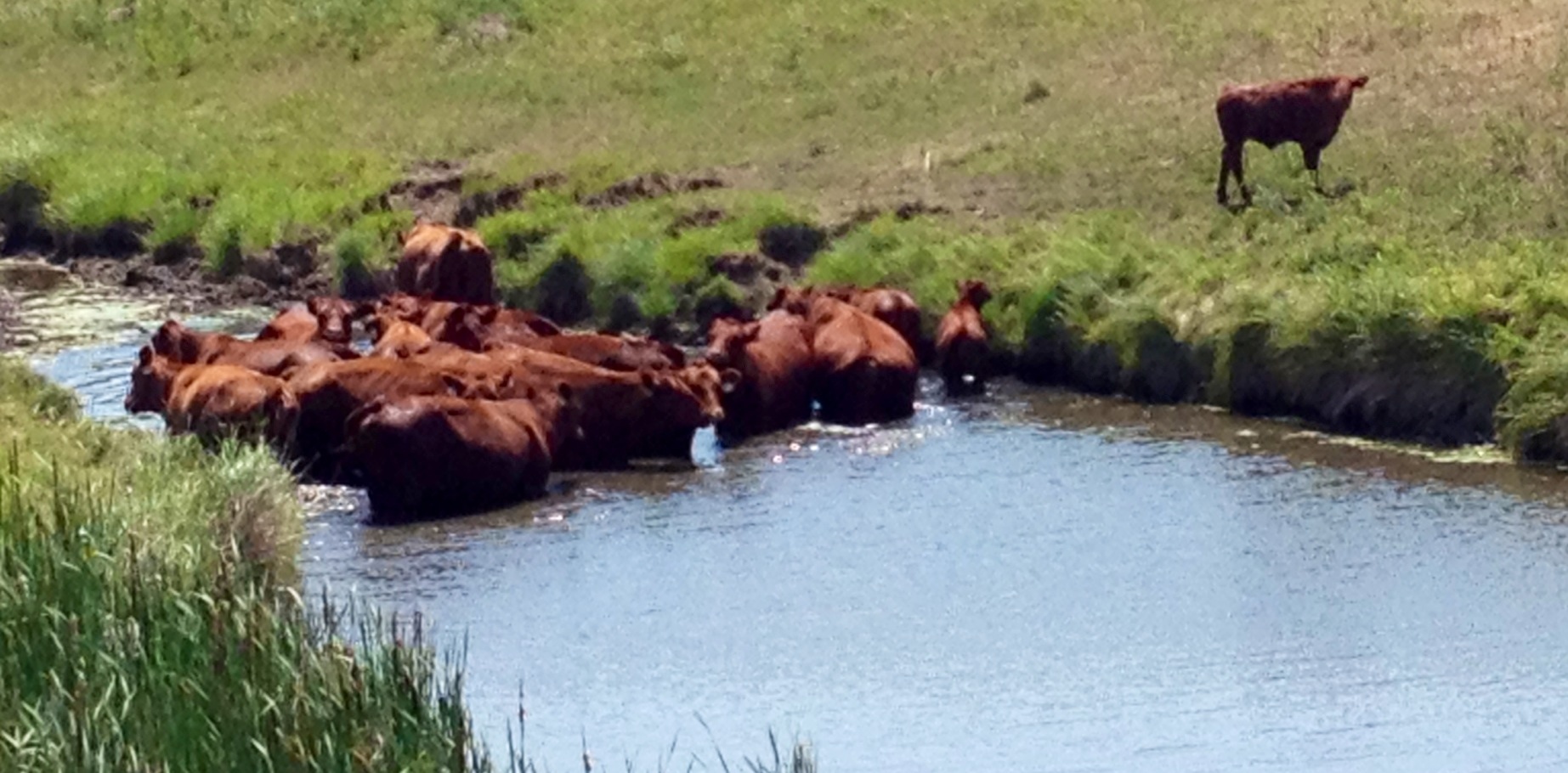 On my way I see cattle doing what they can to stay cool in the midday sun.