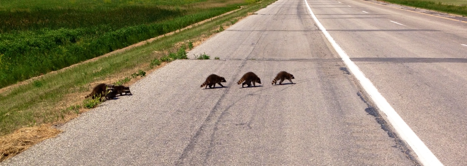 I also spot a family of raccoons about to cross the highway so I double back and shoo them back where they came from.