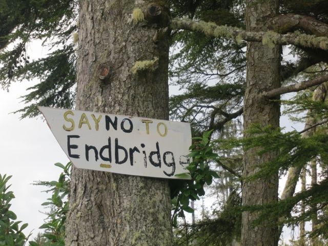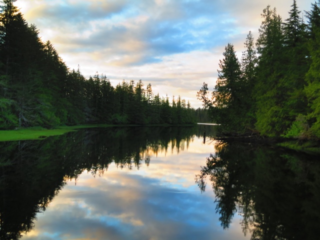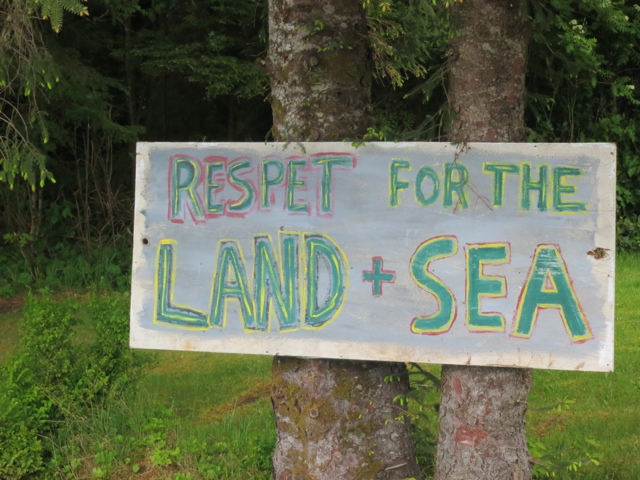 Heading out from Port Clements I am tested. Do I really have the mental mettle for this trip? The wind is blowing straight on at about 35 km per hour with gusts to 64 km per hour. There is nothing more challenging to a cyclist. When I crest a ridge sometimes the wind blows me to a stop. I cannot reef my panniers, which provide lots of real estate for the wind to push me backwards. In addition to the tough slog through the wind, sometimes mixed with rain, the sound and fury of it can be deafening. The wind rips loudly through the helmet and the rain jacket flaps like a jib that has come loose in a storm. Thwap, thwap, thwap.