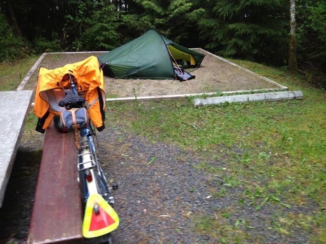 It was a slog of a day against wind and rain and I would have changed plans if I I did not have to catch the 11:59pm ferry back to Prince Rupert. So, after going north, northwest for ten days and nearly 1,000 kilometers, tomorrow I turn north west to begin finally the continental crossing.