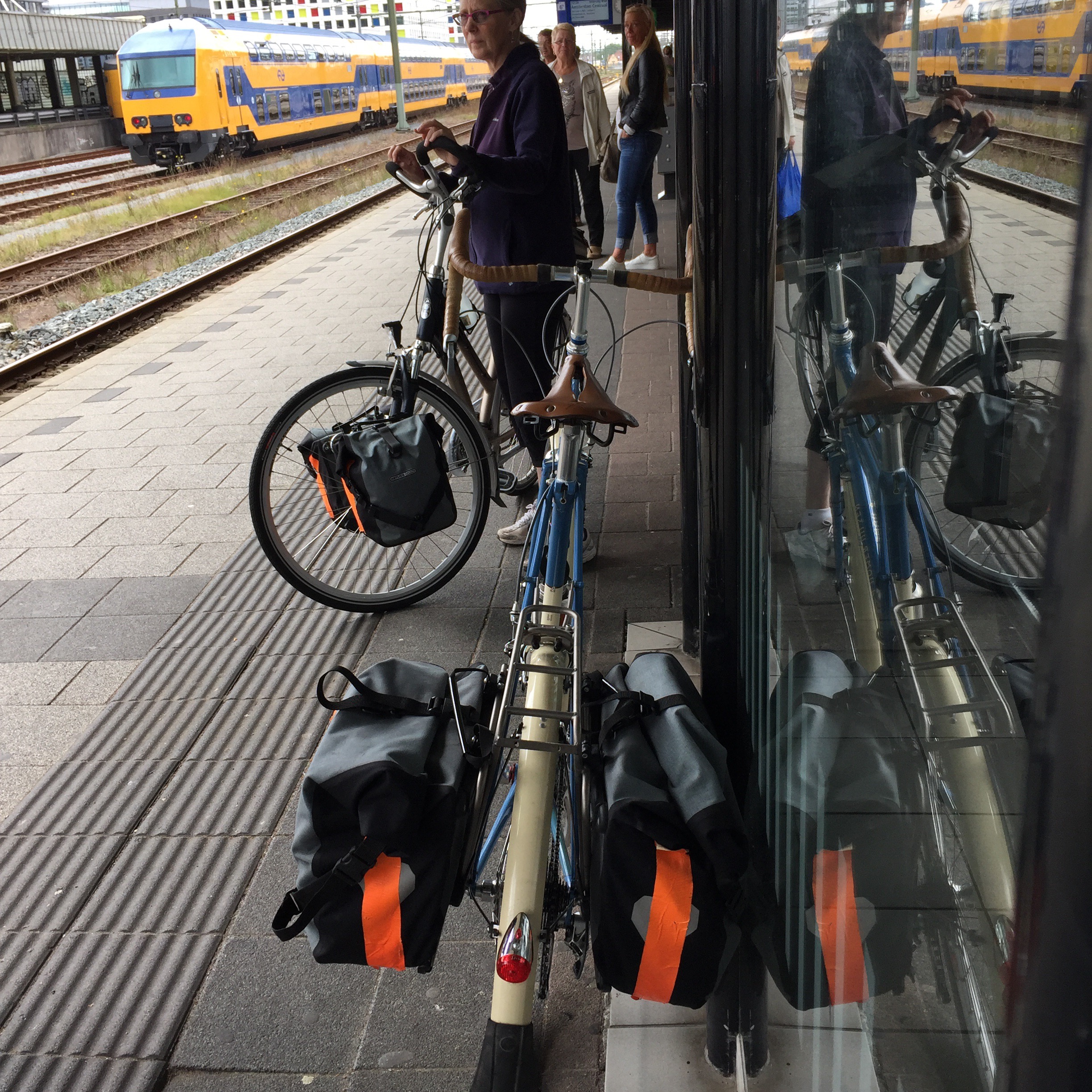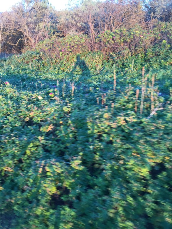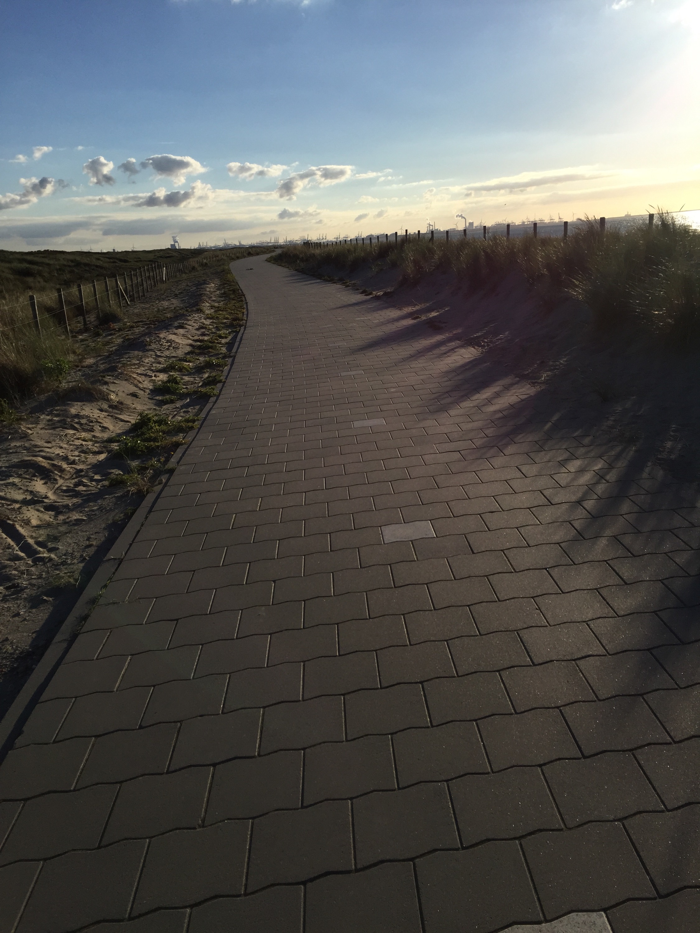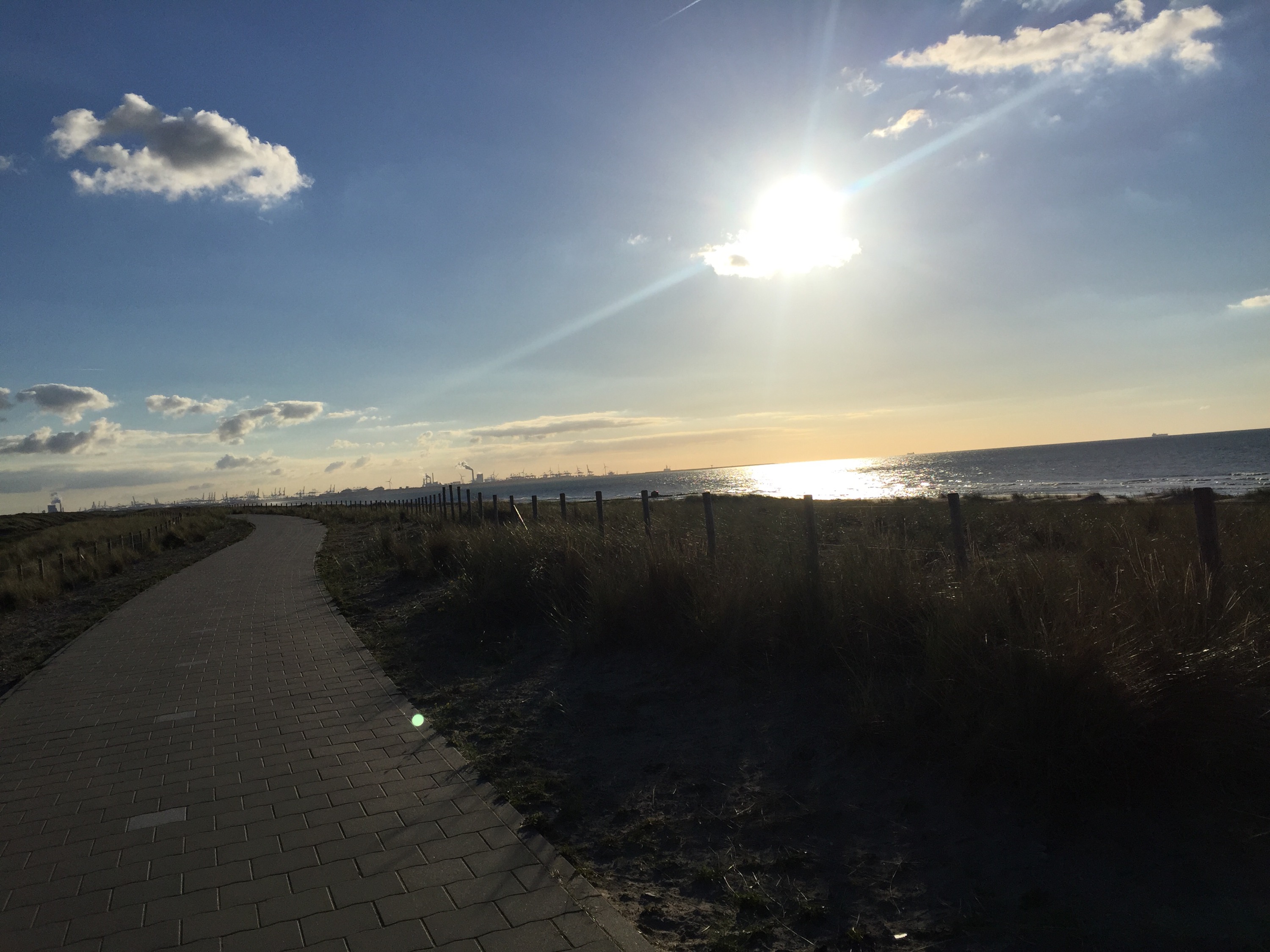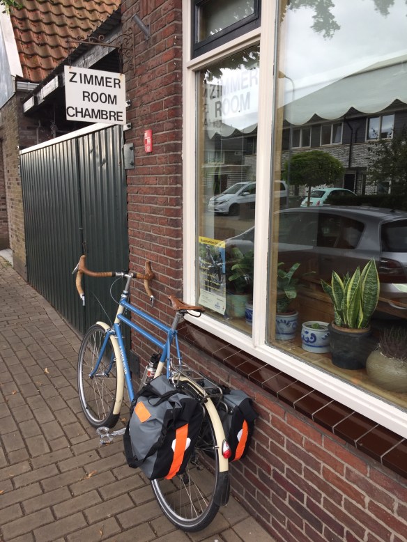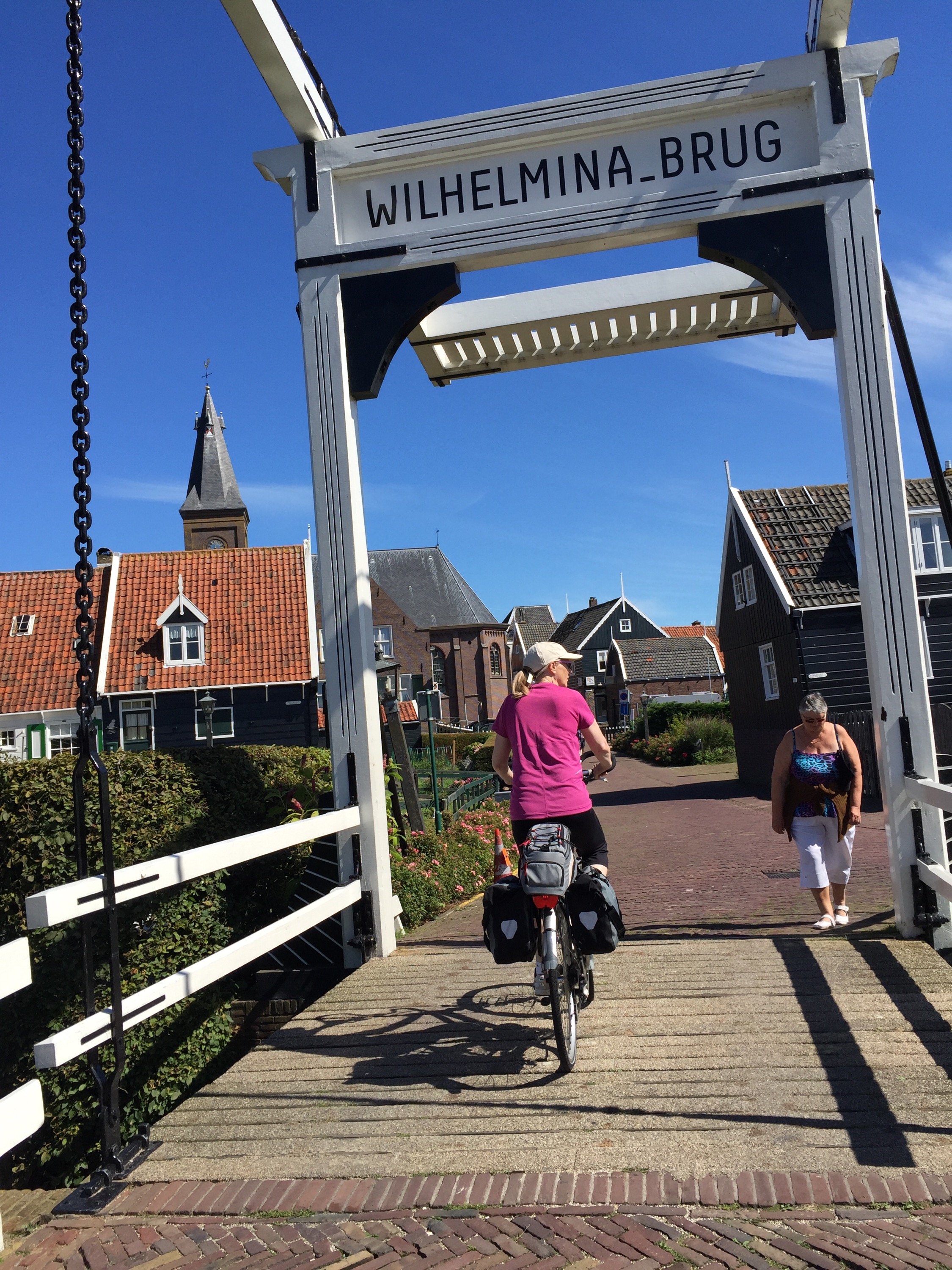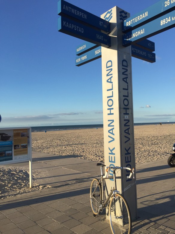 Here is another angle when the bike path goes along the side of the dike instead of on top of it. The bike path itself is well below the sea on the left, which you cannot see but imagine the sea on the other side above the level of Leisa’s head.
