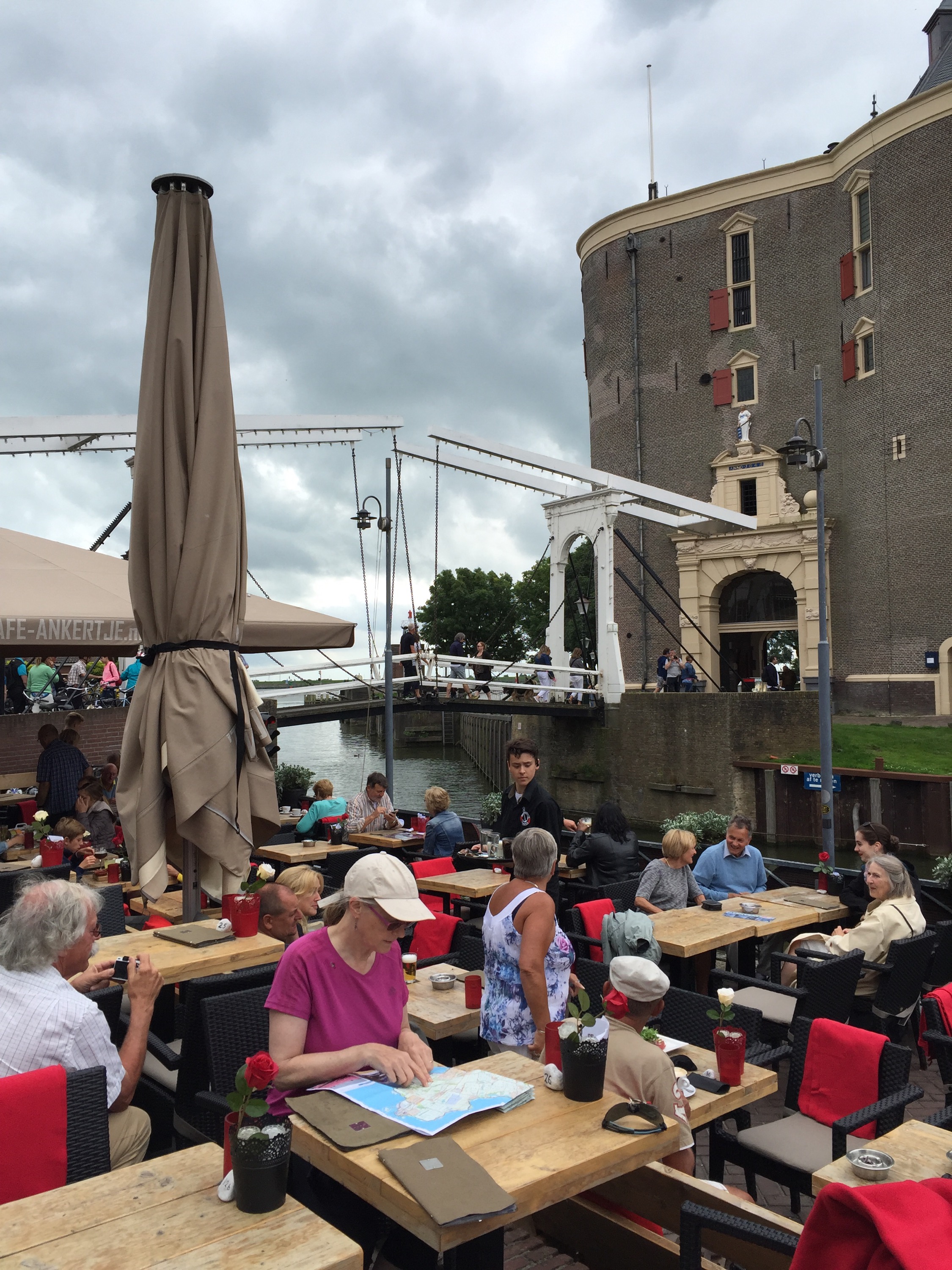 Lots of historic towns along the way. Here we enjoy lunch in Enkhuisen next to the Drommedaris tower gate built in 1573.