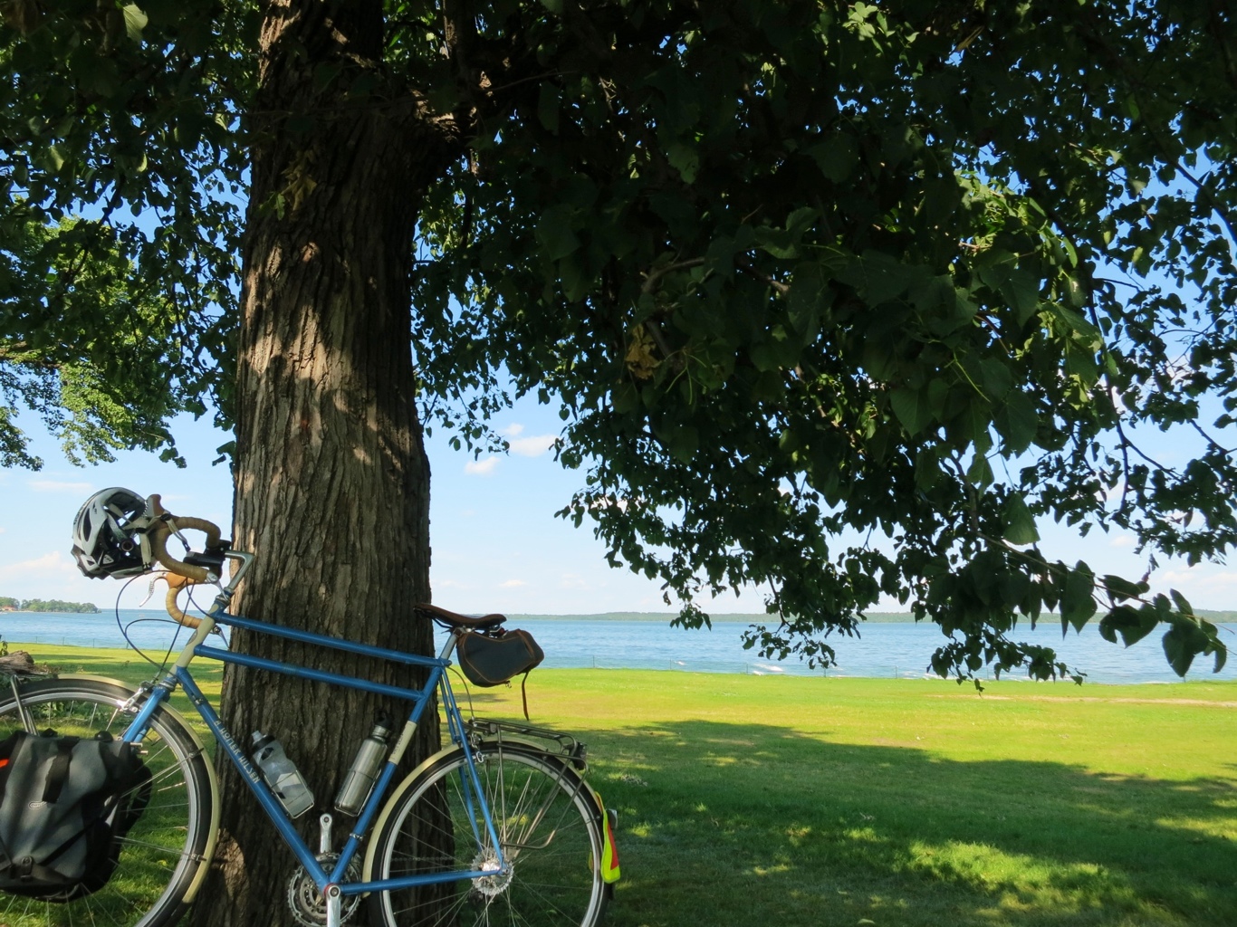 Without Leisa with me, I spend more time cycling so I end up doing a kind of double century, pedaling first 100 km then eventually reaching 166 km or just over 100 miles all the way to Marquette on the shores of Lake Superior. It is great to be on a shoreline again. But before I get to anything beautiful, like the approach to any town or city in the US with a reasonable population, I have to go through the mess of strip malls and big box stores. Collectively, not only are they ugly, they sell lots of stuff we really don’t need and they suck the life out of once thriving small downtown businesses. These architecturally beautiful downtowns, where people used to get to know each other and where you can walk on sidewalks are economically crushed when Wallmart and its many kin come to their outskirts. And the only way to get to these warehouse sized stores is by car. So goes so many towns and so many good community habits with them.