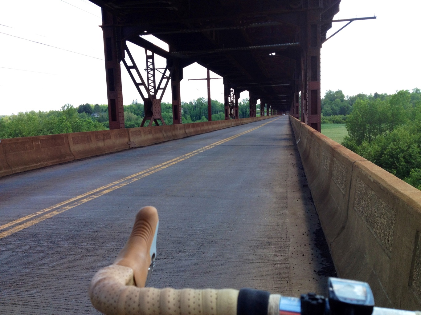It was a beautiful day for a bike ride, made even more so because I was on small county roads weaving my way back to Route 2. I found an old bridge over the St. Louis River underneath an even older train bridge. All the signs suggested even a loaded touring bicycle might be too much. But I am not loaded.