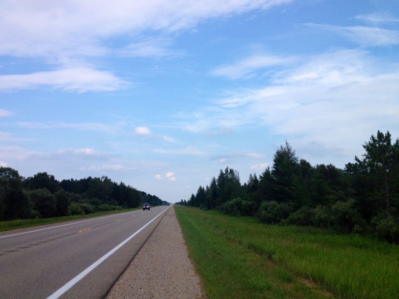Route 2 continues to be a good choice as a way to tuck under Lake Superior on my way to Ottawa. Wide shoulders with a nice rumble strip but in a year or two, unless the cracks are fixed, they will become a field of weeds.