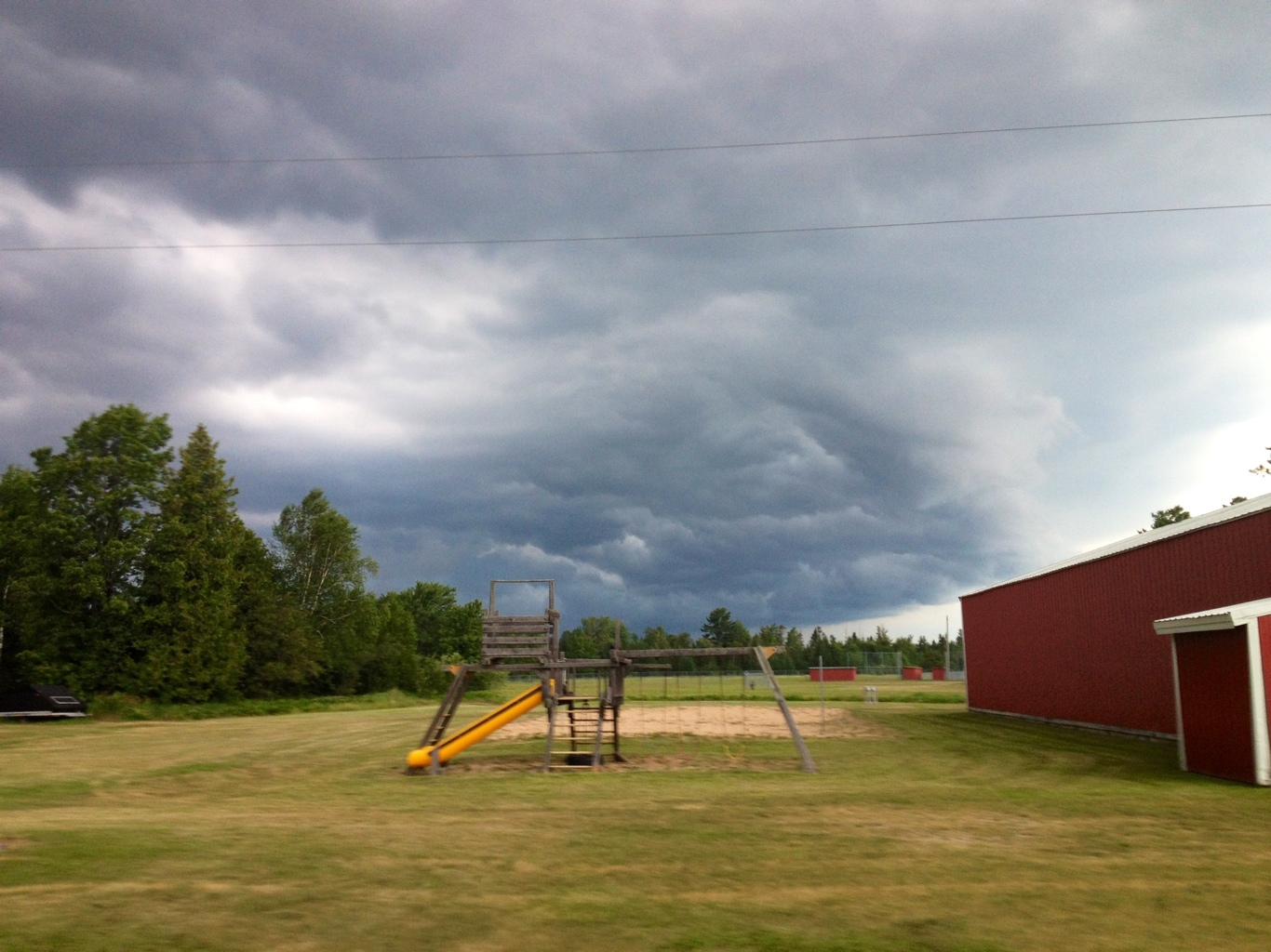 With hot sunny days upon me, the sun bakes me out of the tent once again and into the swing set I camped under the night before. I set a goal for myself to make my way back into Canada in two days, crossing from one Sault Ste. Marie to another. That means about three hundred kilometers by the end of the day on Sunday. I follow route 28 all day with its modest road shoulders. I decide to wear my orange reflective vest as my shirt for the day to make myself more visible.