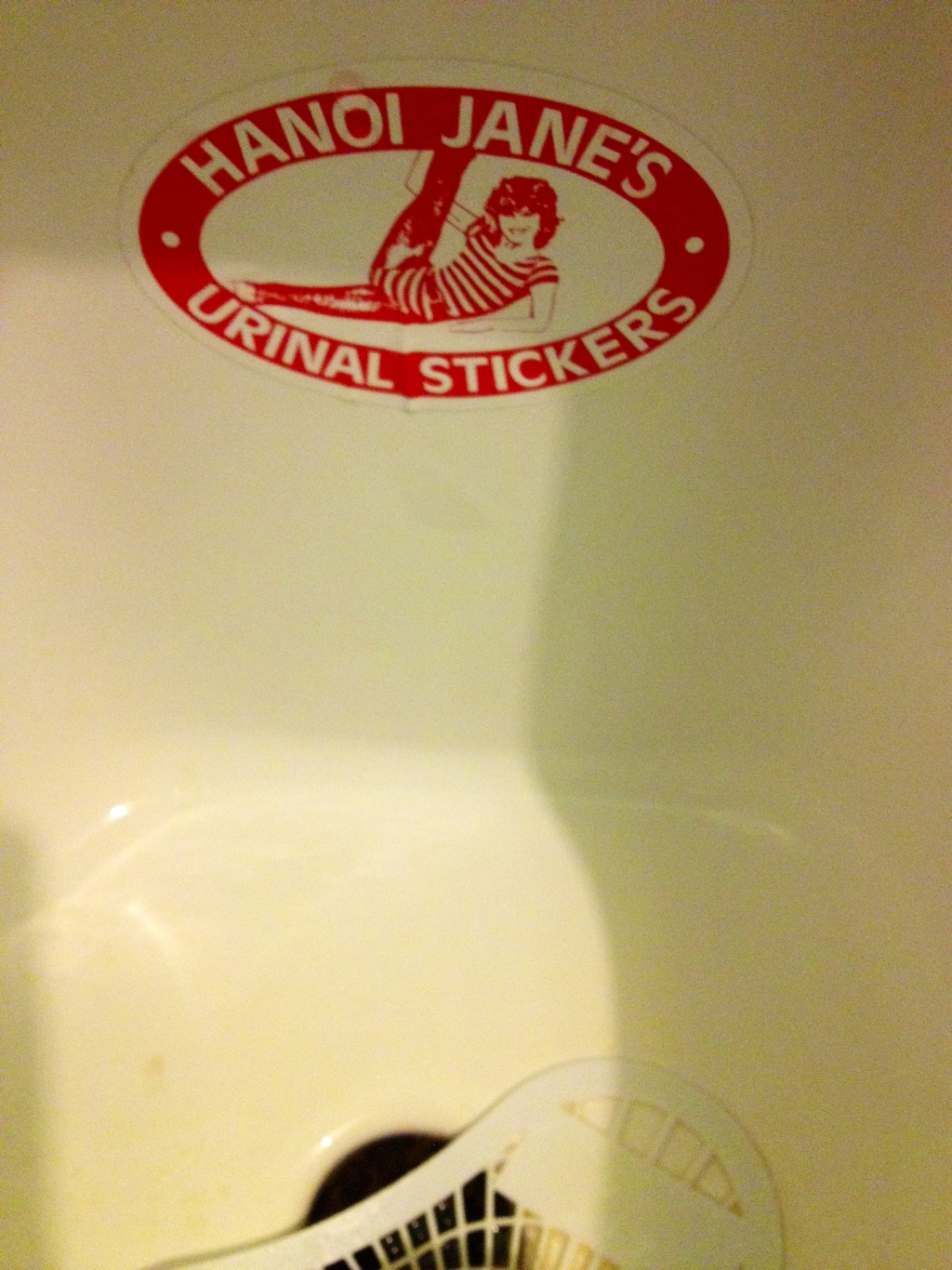 There is a single bar in town that also serves food so I head over for a hamburger and fries. Basically, that was the menu. It was a politically conservative place full of signs like “Charlton Heston is my President” and something that I noticed in the washroom urinal, actually you can’t miss it. I find it amazing that more than forty years after Jane Fonda was protesting against the US involvement in the Vietnam war, this little bar in upper Michigan is still taking the piss out of her.