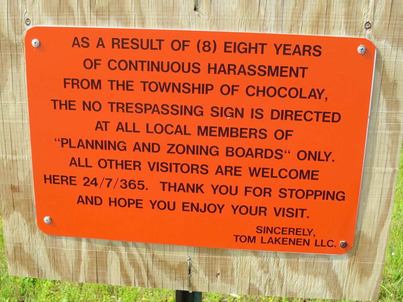 I come upon a park with the most curious set of signs. It may require reading multiple times but clearly the owner of the park has had his park shut down by local authorities and he is taking revenge on them.