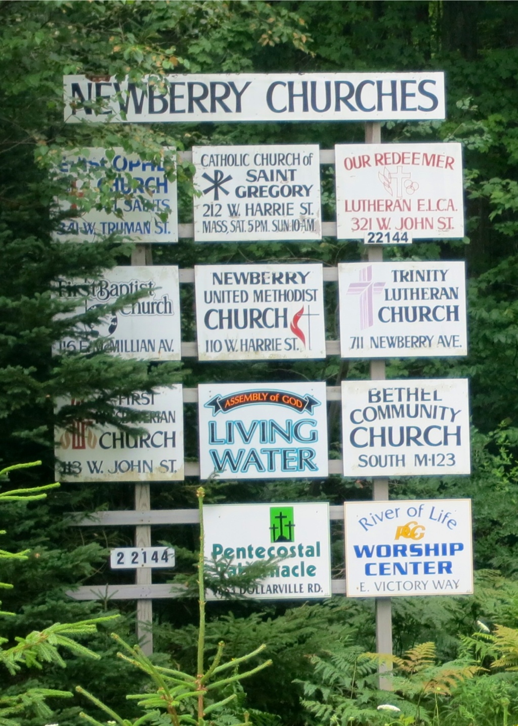 Outside the relatively small town of Newberry, they list an amazing array of choices for formal worship.