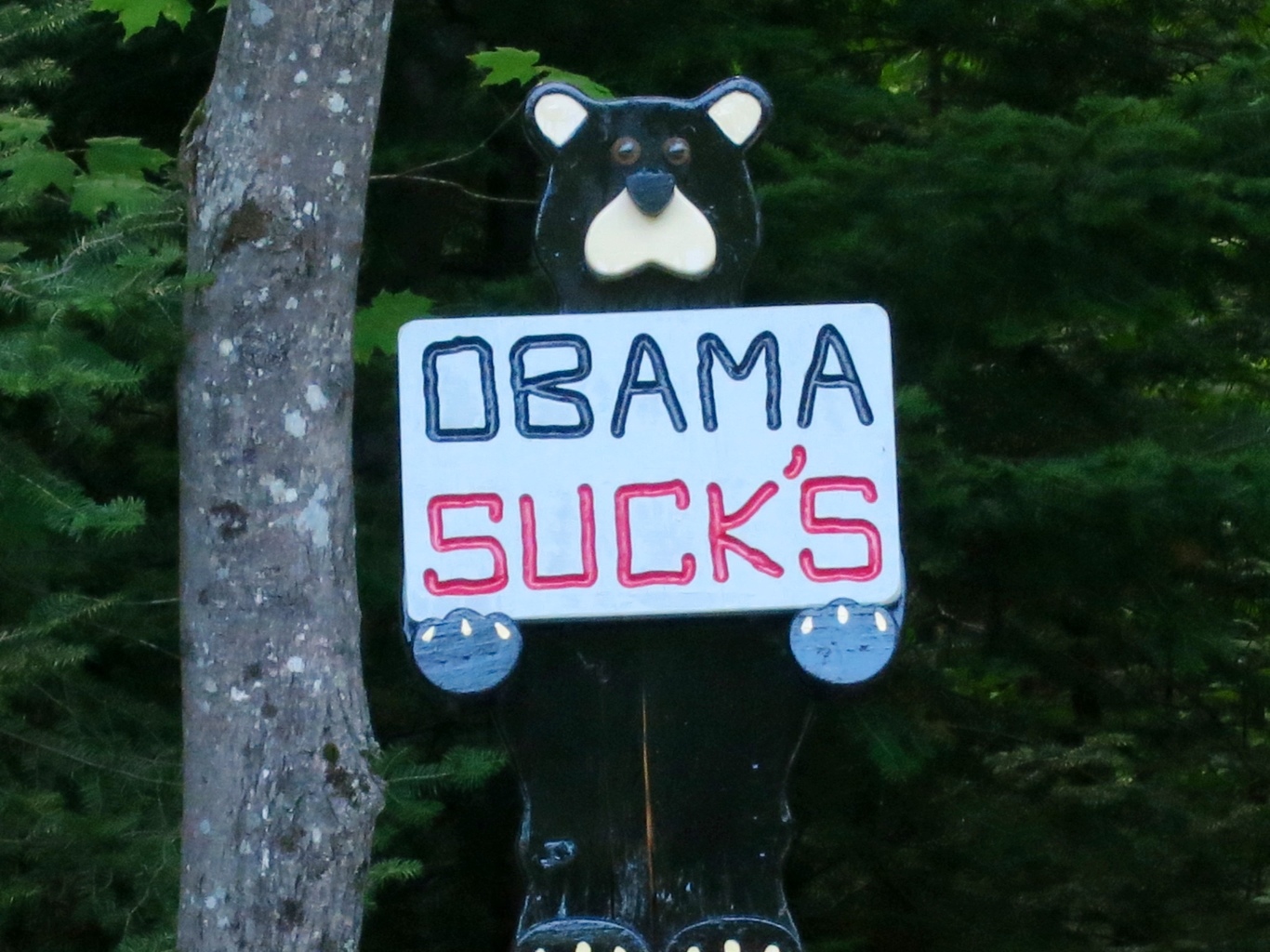 I follow route 28 most of the day but as it gets closer to Sault Ste. Marie, the shoulder gets narrower so I cut up north on route 123. Like the urinal with the Jane Fonda sticker in it, signs continue to suggest this is conservative territory.